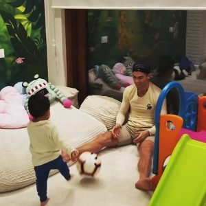 Ronaldo’s son Mateo follows in his footsteps as he teaches the toddler football skills