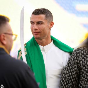 Cristiano Ronaldo celebrates Saudi Arabia’s Founding Day with Al-Nassr, donning a sword and traditional garb in the process