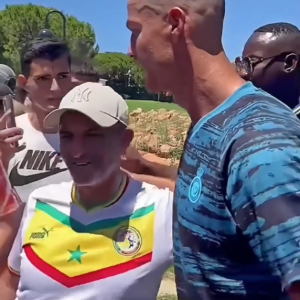 Cristiano being kind to a fan who is wearing the Senegal kit
