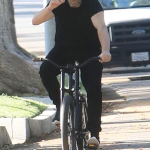 Jason Statham joins a male friend as they go for a ride on their new $8,500 electric bikes in the Malibu Canyon
