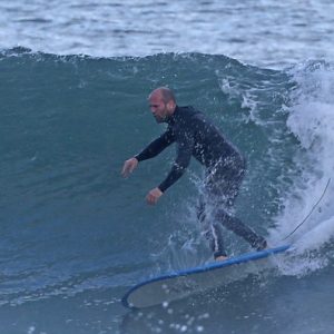 The Statham surfer: Action star Jason carves up some waves on his surfboard during his Hawaiian holiday