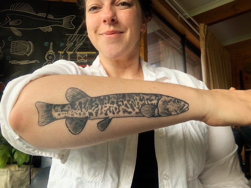 Hannah Ledger’s tattoo is of the freshwater fish Pedder galaxias, which was declared extinct from its original range in 2005 after the controversial damming of Lake Pedder in 1972. A small population lives on in Lake Oberon and is considered endangered.
