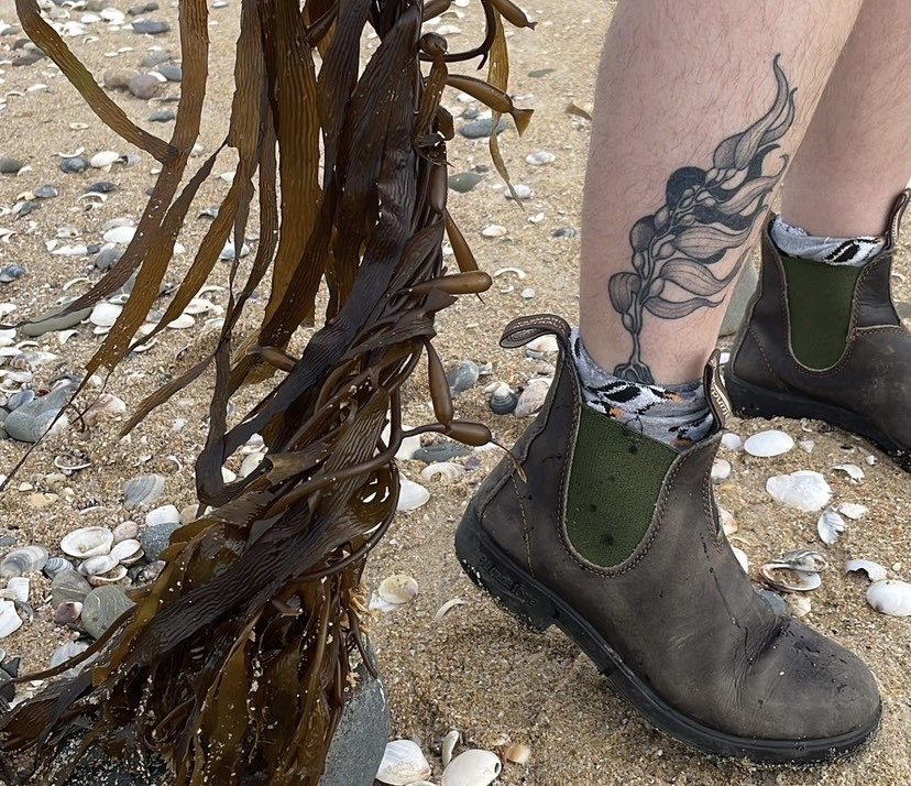 Zali’s giant kelp tattoo, Macrocystis pyrifera, by Blair Howard.(Supplied: Zali)