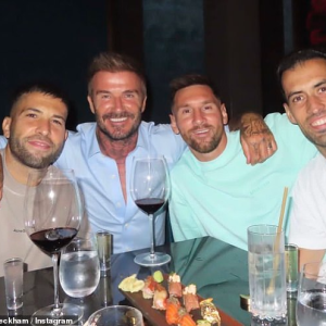 David and Victoria Beckham join Lionel Messi and his stunning wife Antonela Roccuzzo in celebrating Inter Miami’s Leagues Cup victory at yet another pricey Japanese cuisine.