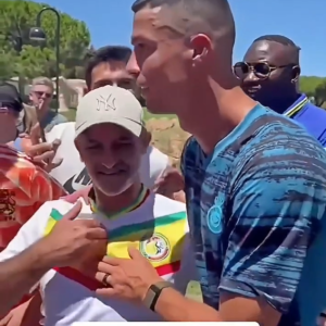 Cristiano being kind to a fan who is wearing the Senegal kit
