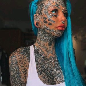 The tattoos on this edgy girl’s body are nothing short of impressive. From her intricate sleeve tattoos to the delicate ink on her collarbone, each design tells a unique story…