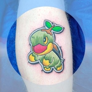 This tattoo artist creates tattoos that look like pop culture patches sewn into the skin