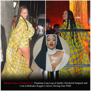 Rihanna Stuns as Fashion Icon: Flaunting Long Legs in Quirky Checkered Jumpsuit and Coat at Barbados Reggae Concert, Driving Fans Wild!