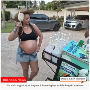 The world happiest mom: Pregnant Rihanna displays her baby bump in hometown