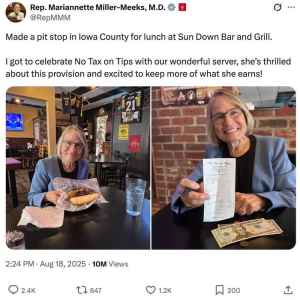This Republican Congresswoman Is Going Viral For The “Ridiculous” Tip She Left At A Restaurant To Celebrate The “No Tax On Tips” Provision Of The Big, Beautiful Bill