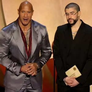 Dwayne ‘The Rock’ Johnson wishes ‘Brother’ Bad Bunny a happy 30th birthday while presenting at the 2024 Oscars.