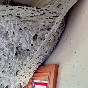 Enormous ‘Alien-Like’ Wasp Nest, Equivalent to a ’70-Inch TV,’ Found by Homeowner in Bathroom.