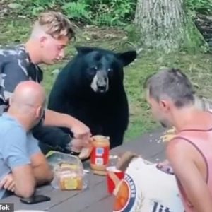 Giant Black Bear Interrupts Family’s Hideout Picnic And Patiently Asks For Some Snacks