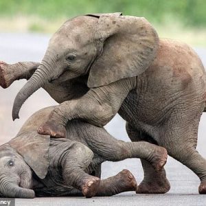 Baby Elephant Buddies Frolics In The Middle Of The Road In An Adorable Video
