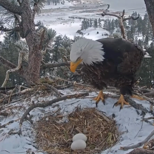 Thousands of people are tuning into a livestream from Friends of Big Bear Valley showing two bald eagles named Jackie and Shadow work to keep their eggs warm. A video…