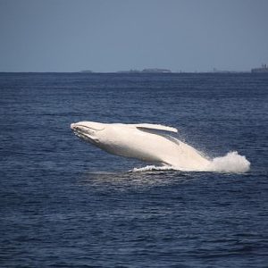 Baby of Migaloo? Extremely rare white whale is spotted just 500m off the coast of Australia