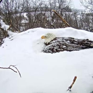 Bald Eagle Gets Buried Up To Its Neck in Snow While Protecting Its Eggs