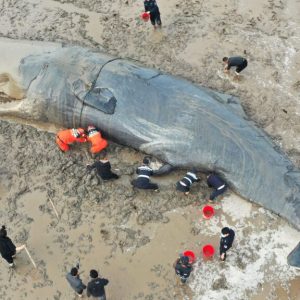 After a 20-hour rescue mission, a 65-foot whale that washed up on a beach in China was finally towed back into the water. Recently, a massive whale became stranded in Ningbo…
