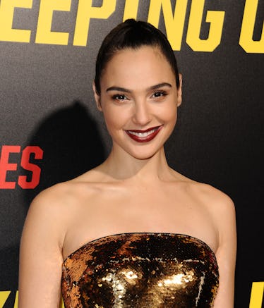 Wearing her hair in a sleek, french braid with a golden metallic smoky eye and a satin burgundy lip, Gadot arrives at the Keeping Up with the Joneses Los Angeles premiere. (2016)