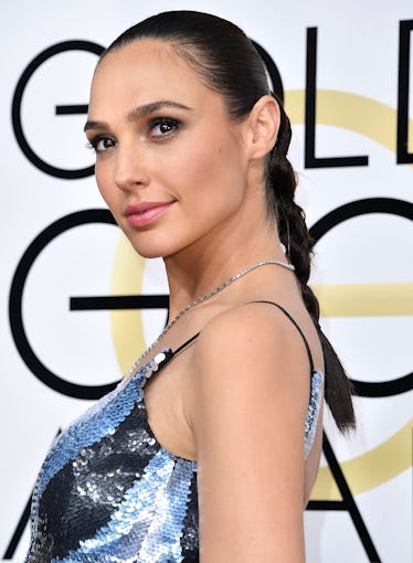 Stunning at the 74th Annual Golden Globe Awards, Gadot wears her hair in a sleek, braided up do with a grey smoky eye and a light pink lip. (2017)
