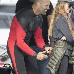 Jason Statham slips into a wetsuit to battle a giant shark in scenes for terrifying new movie Meg