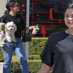 Selena Gomez goes out for some matcha with a friend in West Hollywood with her pooch under her arm