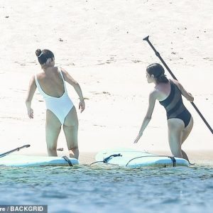Selena Gomez shows off her toned curves in a tan swimsuit as she holidays with BFF Nicola Peltz
