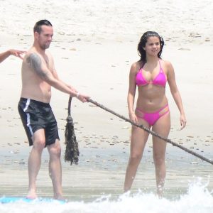 Selena Gomez flaunts her slender curves in a skimpy pink swimsuit as she lets her hair down in Mexico
