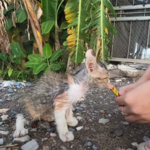 “The unfortunate cat, who was ill and unattractive, was abandoned on the highway but luckily found by a compassionate man just in time!”
