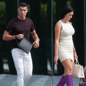 Georgina Rodriguez wows in a cream dress and purple boots as she steps out with Cristiano Ronaldo