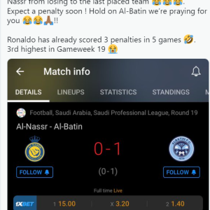 Fans reacts as Cristiano Ronaldo’s Al Nassr score thrice in 12min injury time