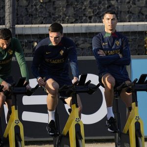 Cristiano Ronaldo has been pictured working out alongside his Portugal team-mates after touching down in Lisbon ahead of their upcoming Euro 2024 qualifiers. Ronaldo was seen taking part in a stretching session…