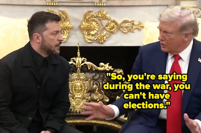 Trump interrupted the Ukrainian leader to confirm the bit about no elections during wartime.