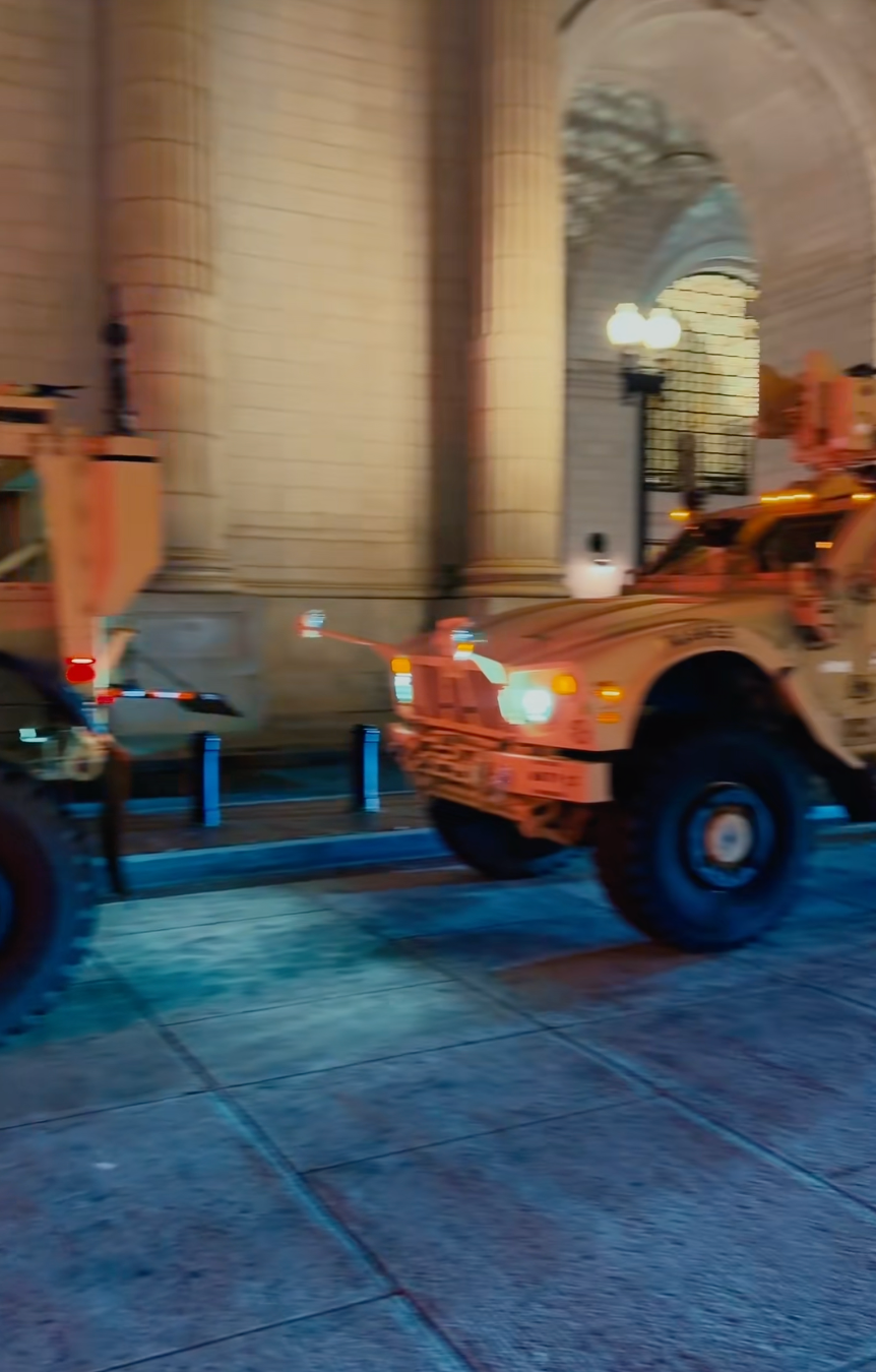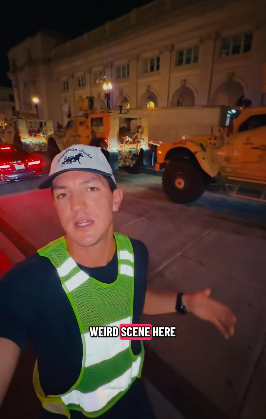 Following that group of cars, he made his way to Union Station. “Here is what the scene looks like,” he said, panning to military vehicles lined up out front.
