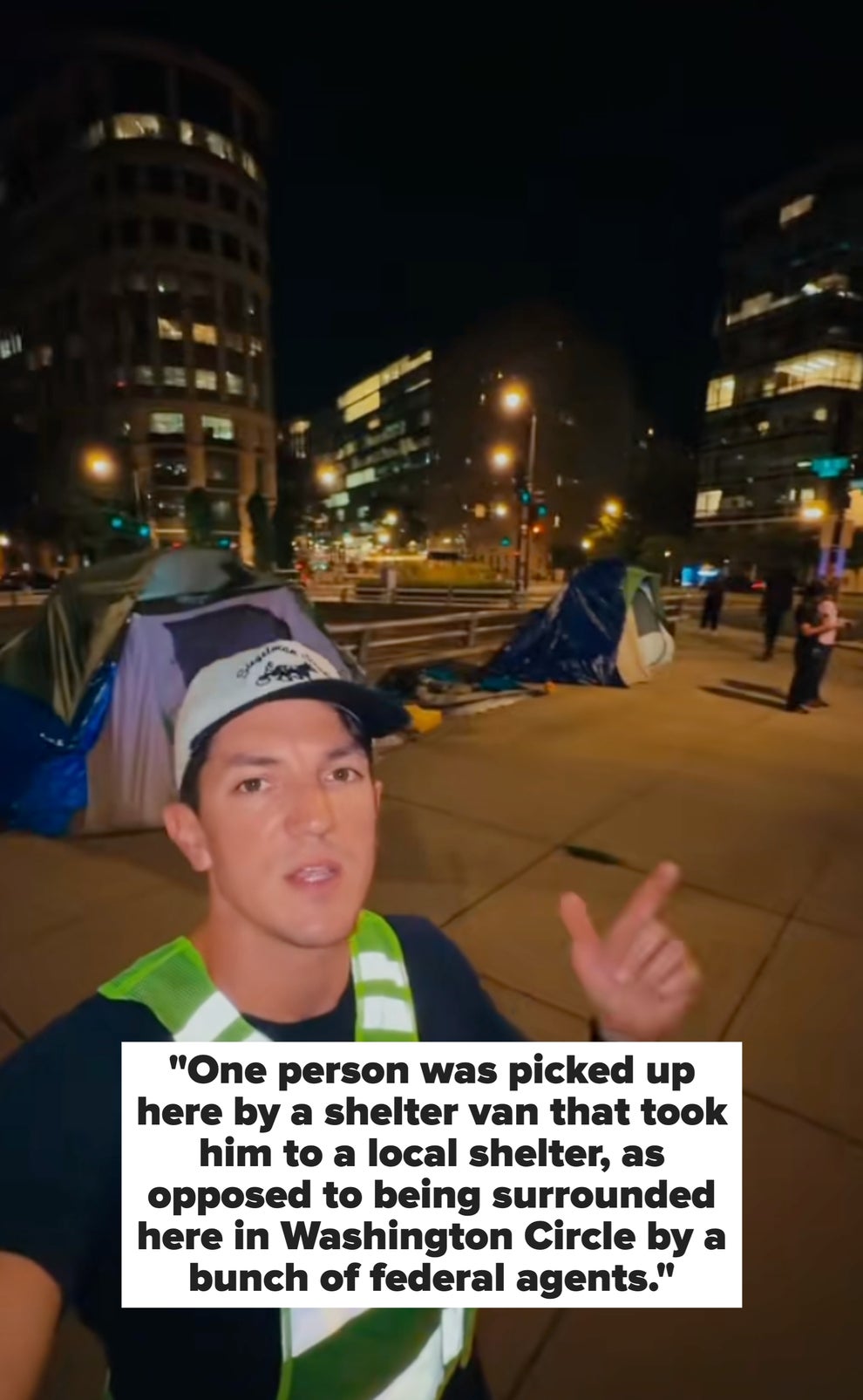 Outside near the campus, where some people who are unhoused stay, Rob said, “I don’t necessarily want to show faces, but one person was picked up here by a shelter van that took him to a local shelter, as opposed to being surrounded here in Washington Circle by a bunch of federal agents.”