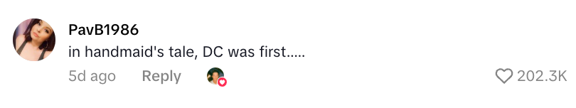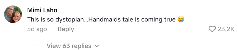 “This is so dystopian…Handmaids tale is coming true 😭,” this person said.