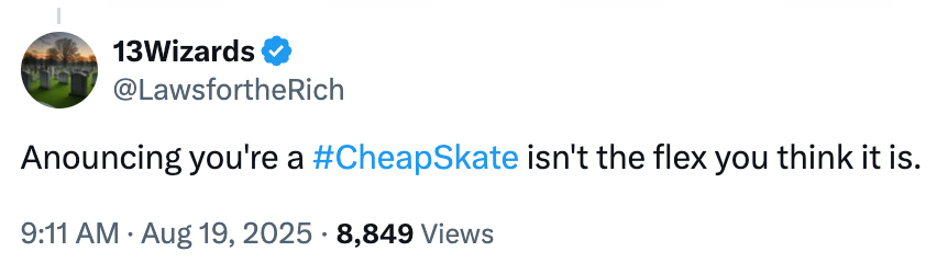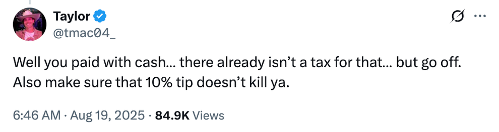 “You’d think the server would at least get $5 since you’re using her as a political prop on a cash tip she wouldn’t have reported,” one user replied on X, with another person commenting: “I’ve never seen someone brag so hard about being such a cheap asshole.”