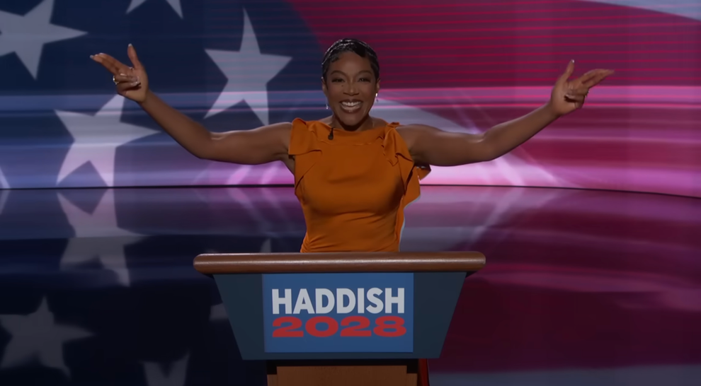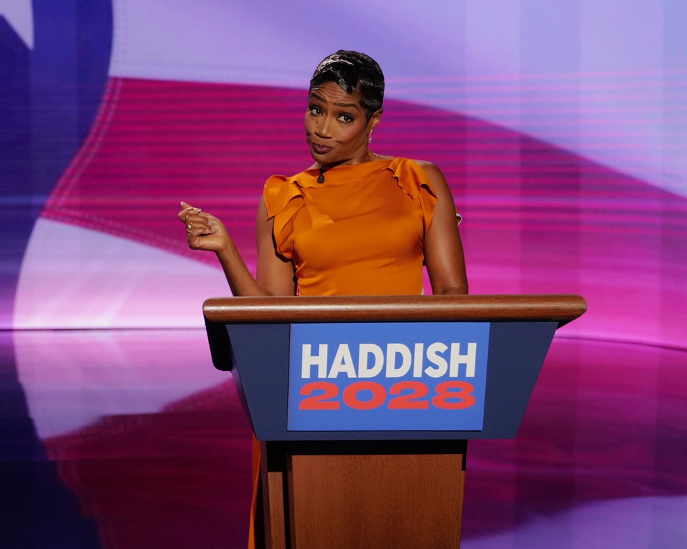 Haddish delivered a campaign-style speech unveiling a platform that includes paying taxes with old gift cards.