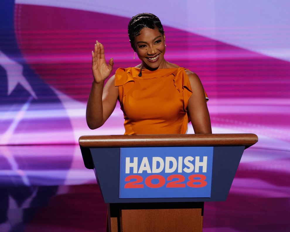Haddish delivered a campaign-style speech unveiling a platform that includes paying taxes with old gift cards.